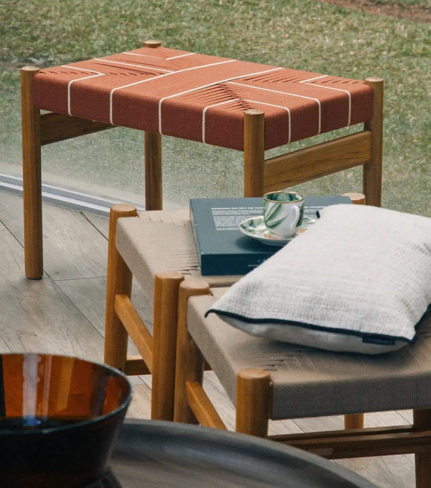 Made to be versatile. The Zapatera stool is a solid teak piece that moves in and out of spaces.