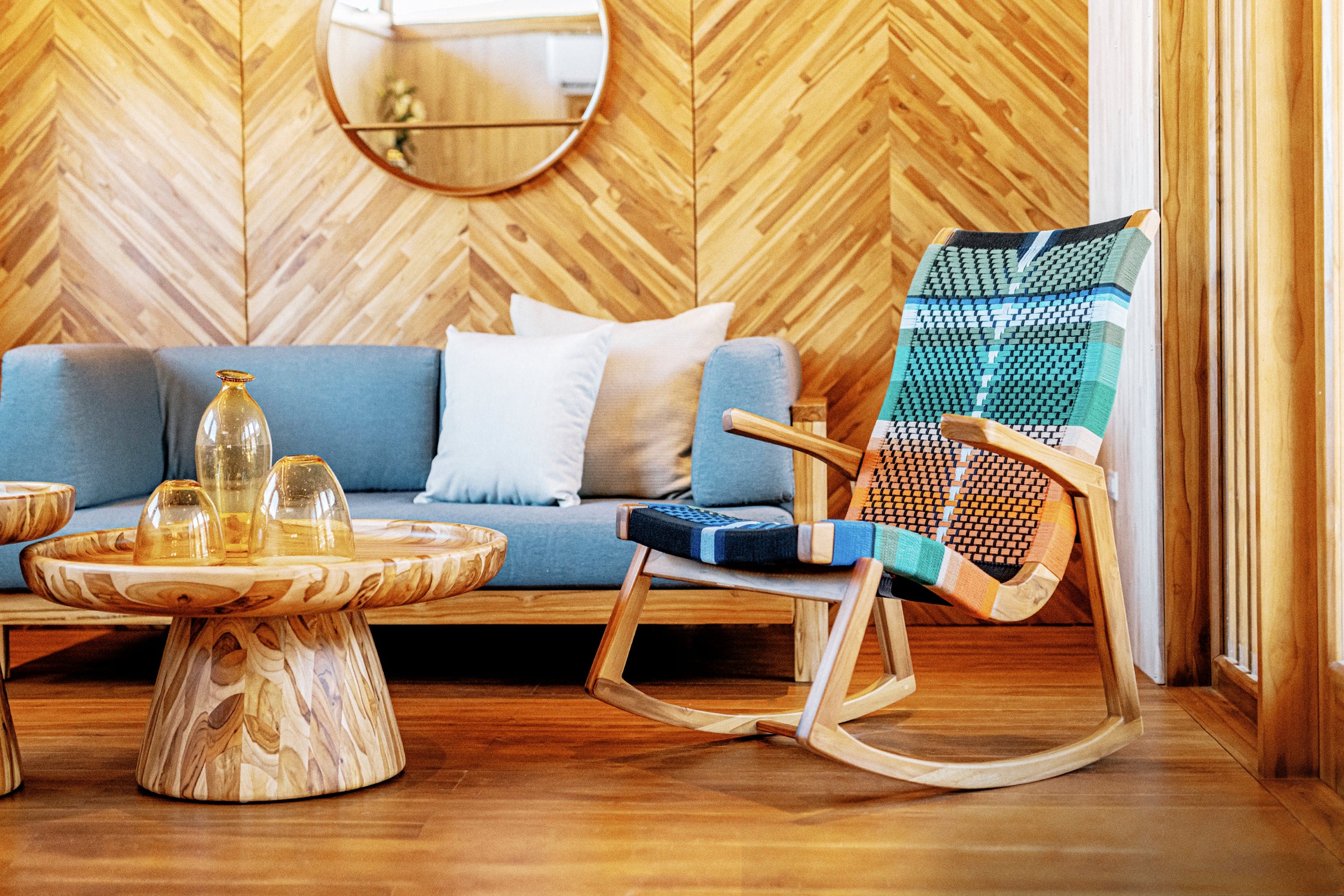 The Amador is our most popular rocker that combines comfort with a rich textured woven cord back and seat inspired by Mid-Century Danish Cord and Japandi designs.
